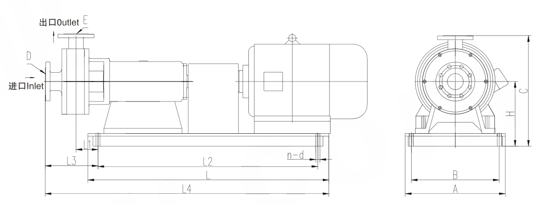 | 型号 | 功率 | 转速 | 流量 | 出口压力 | 口径 | L | L1 | L2 | L3 | L4 | A | B | C | H | N-D | |