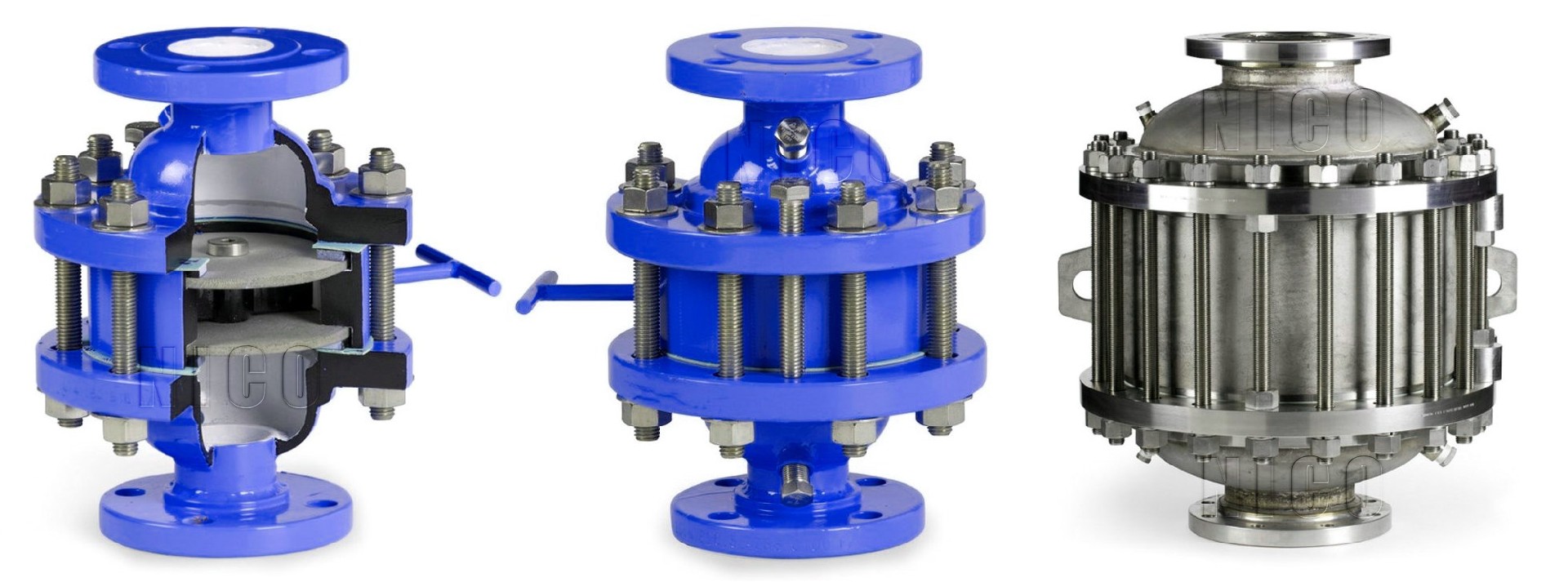 美国尼科NICO进口阻火器是是用来阻止易燃气体、液体的火焰蔓延和防止回火而引起爆炸,从而保证储罐的安全。这类阻火器内的阻火层常用不锈钢带或铜镍合金材料压制而成的波纹状,波纹的大小由气体性质和阻止火焰速度决定。它的功能是允许易燃易爆气体通过,对火焰有阻止窒息作用。