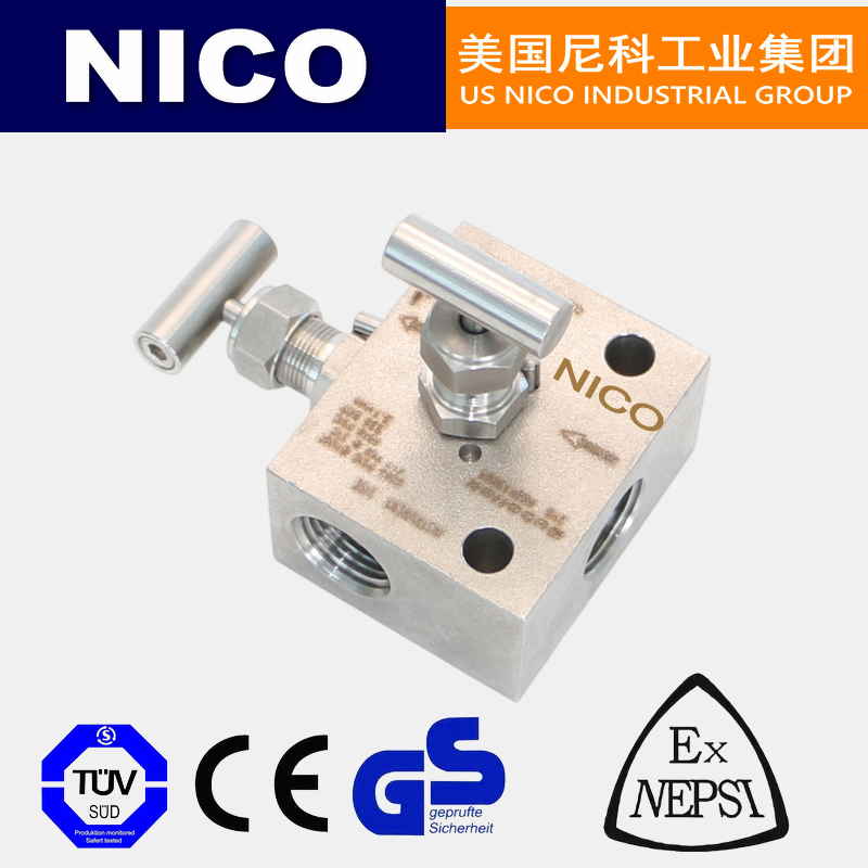 美国尼科NICO进口压力仪表二阀组常见与差压变送器配套使用,是由二个截止阀组成。左边为高压阀,右边为低压阀排污阀。两端是起截断,其作用是将差压变送器正、负压室与引压点导通或切断,或将正、负压室切断或导通。为仪表提供多通路,减少安装工作量,提高系统可靠性。NICO进口压力仪表二阀组外形美观、结构紧凑、密封可靠,可以与各种差压/压力变送器、压力仪表等配套安装,用于开启、切断、排放流体的流量、压力、压差、液位等操作,同时方便仪表在线安装、调试、维护、检查。主要结构型式有:扁平型、T型、H型、柱状型。