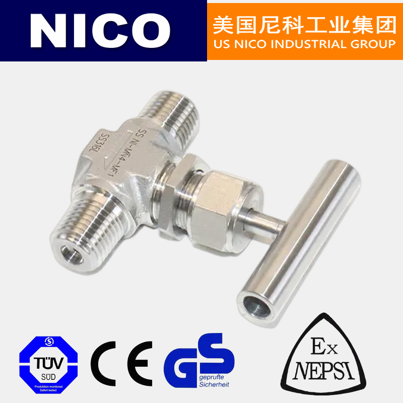 美国尼科NICO进口外螺纹针形阀也叫针型阀,是指连接方式为外螺纹的针阀,结构形式和截止阀一样,具有寿命长、耐高压、体积小、耐腐蚀等特点。进口外螺纹针形阀具有更好的密封性能和耐受压力的能力,一般用于较小流量,较高压力的气体或者液体介质的密封。尼科针型阀每只针型阀均以额定工作压力的1.5倍氮气进行密封测试,可以根据不同的压力,不同的温度及介质来选配阀门配件确保阀门在特定的工作状态下不会发生泄漏,在相应的温度下密封件不会发生密封不严的现象。并可通过更换阀芯来实现截止、调节截流。