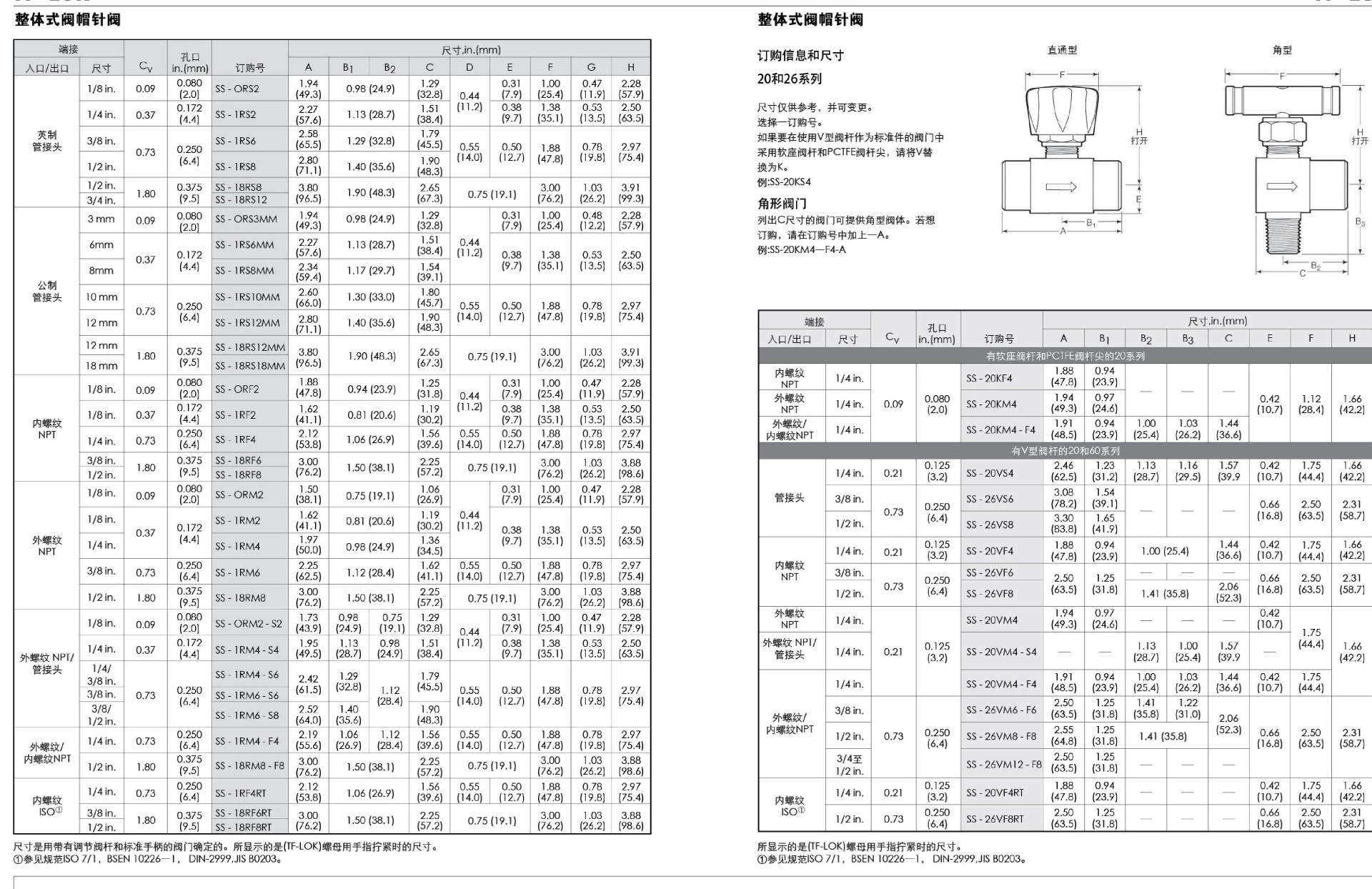 美国尼科NICO进口模锻体针型阀是仪表测量管路系统中重要组成部分,体积较小,更适合安装位置有限的特殊工况,NICO每只针型阀均以额定工作压力的1.5倍氮气进行密封测试,可以根据不同的压力,不同的温度及介质来选配阀门配件确保阀门在特定的工作状态下不会发生泄漏,在相应的温度下密封件不会发生密封不严的现象。并可通过更换阀芯来实现截止、调节截流。进口针型仪表阀具有更好的密封性能和耐受压力的能力,一般用于较小流量,较高压力的气体或者液体介质的密封,最合适与与压力表配合。