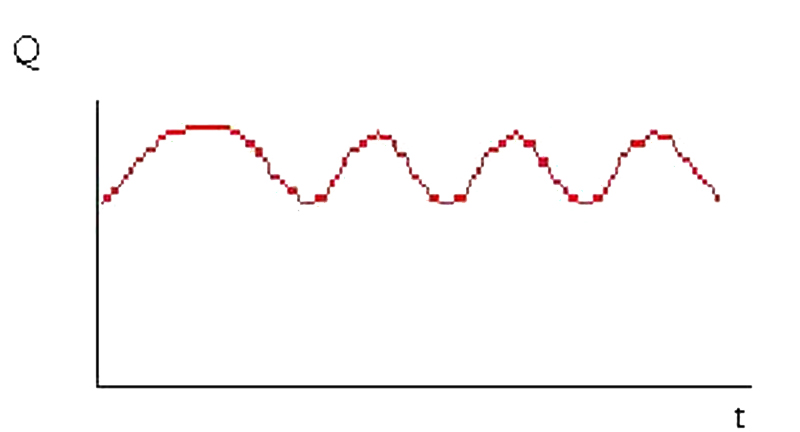 这是因为在柱塞泵中,液体介质的吸入和排出过程是交替进行的,而且活塞在位移过程中,其速度又在不断地变化之中。在只有一个工作腔的泵中,泵的瞬时流量不仅随时间而变化,而且是不连续的。随着工作腔的增多,瞬时流量的脉动幅度越来越小,乃至在实用上可以认为是紊流。
