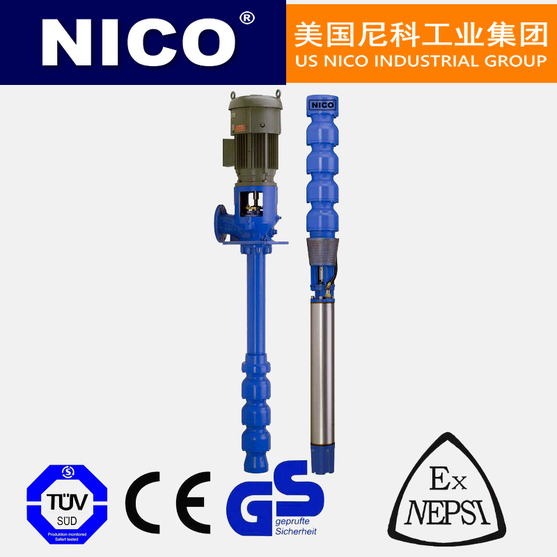 美国尼科NICO进口液下排污泵为立式液下式结构,工作时泵体浸在水中,液下深度可达0.5~5m,并采用独特的单叶片或双叶片叶轮结构,能有效通过泵口径5倍的纤维物质及直径为口径50%的固体颗粒。采用液面之上安装方式,该泵体在水下工作,通过长轴驱动叶轮旋转将物料排出泵管,电机位于水面之上,泵顶端风冷设计。它不仅具备普通排污泵的性能优点,还克服了潜水泵不能在高温介质环境下使用,容易烧电机的缺点,安装方式可多变,比如固定式安装盘安装、浮桶绑定安装、槽钢支架安装。具有节能效果显著、防缠绕、无堵塞、自动安装和自动控制等特点。在排送固体颗粒和长纤维垃圾方面,具有独特效果。该产品泵采用独特叶轮结构和新型机械密封,能有效地输送固体物和长纤维。叶轮与传统叶轮相比,该泵叶轮采用单流道或双流道形式,它类似于一截面大小相同的弯管,具有非常好的过流性,配以合理的蜗室,使得该泵具有效率高、叶轮经动静平衡试验,使泵在运行中无振动,低噪音。还可分单管、双管安装方式。