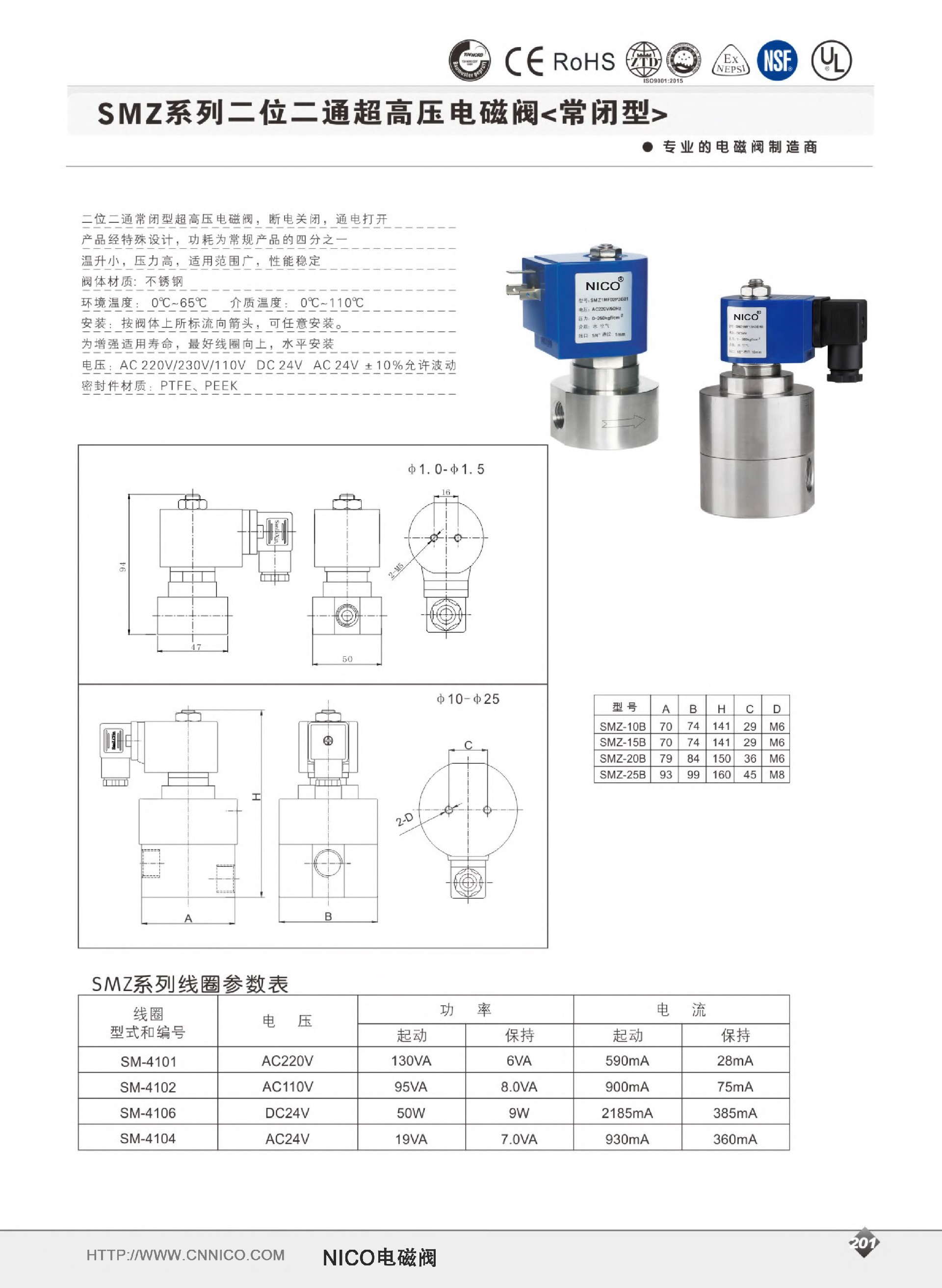 美国尼科NICO进口直动式系列电磁阀为直动活塞式结构,电磁力直接作用于阀芯系统,电磁阀的动作性能完全依靠电磁力及复位弹簧,不受介质压差等因素的影响,可以在无压差(从0MPa开始工作)或真空(1.33X10-7MPa)状态下进行可靠的开关动作,工作介质可以正反两个方向流动,可实现双通双向截止。