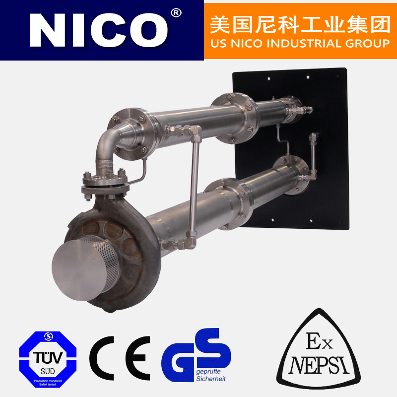 美国尼科NICO进口硫磺液下泵为单级单吸高温夹套液下离心泵,主要用于硫磺制酸工艺流程中输送温度为135℃≤T≤145℃熔融液态硫磺。硫磺液下泵,是在普通液下泵的基础上,根据硫磺制酸的工艺流程要求,自主开发的输送高温液态硫磺的专用液下泵。适用于各种规模制酸工艺中输送硫磺或者其他易结晶的介质。硫磺液下泵广泛适用于各种规模制酸工艺中输送硫磺或者其他易结晶的介质