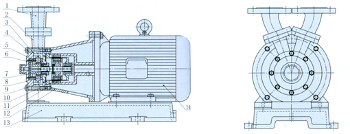 | 1 | 进出口接管 | 2 | 泵壳 | 3 | 密封垫 | 4 | 泵盖组件 | 5 | 叶轮 |