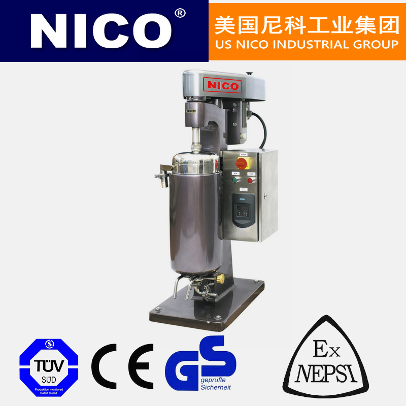 美国尼科NICO进口高速离心机专为需要连续分离过程的应用而设计,无论是液体和固体的分离、高粘度物质的提取、浓缩和澄清、小体积分数的固体、腐蚀性物质的分离等领域的应用程序。进口高速离心机机身、转鼓等使用不锈钢制作。美观简洁,清洗方便。高速离心机有一个高速旋转的细长转鼓、有一个进料口和两个出料口。轻、重料液的出口分流比可用调节环来控制。在液-液分离的同时,也对悬浮液进行了澄清。主要用于分离各种难分离的乳浊液,特别适用于二相密度差甚微的液、液分离(比重差大于0.1%),以及含有少量杂质的液、液、固三相分离。油品类的分离,变压器油 ,食用油脱水及脱蜡,透平油,生物柴油,煤焦油,润滑油,船舶燃料油,淬火油;各种糖浆剂的分离;全血分离--从全血中分离血浆、血球;生物制品的分离;油水分离,污水处理等。